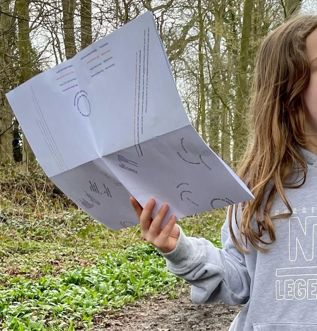Jenny Cashmore, an artist based in Wales, concluded her artist residency at Erddig with a special event centered around the March Equinox. She assigned me the task of creating an invitation for the event and designing a text-based artwork that would serve as a map, utilizing prompts to foster a deeper connection between people and nature.